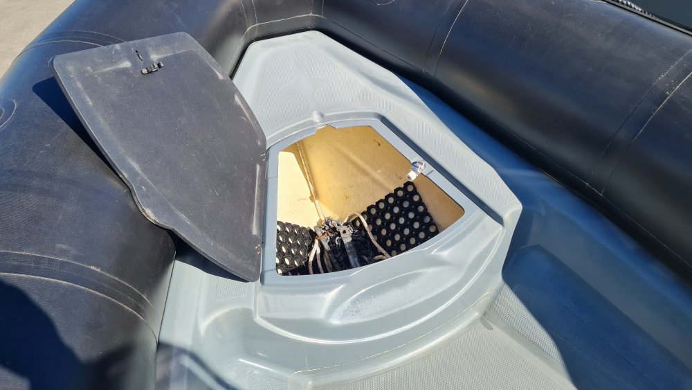 Flotteur PVC noir / Console Optima avec réservoir carburant 68L / Bolster Optima avec coffre de rangement.