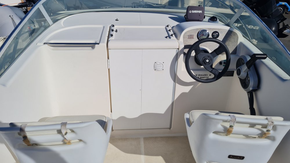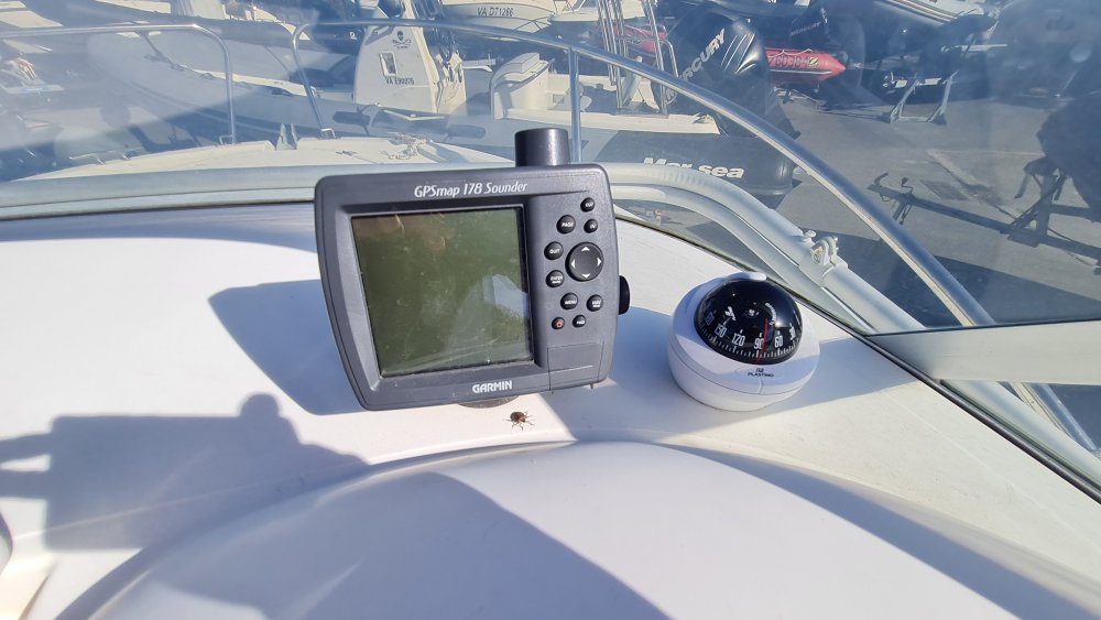 Equipements : Combiné Gps sondeur Garmin 178 / Compas / Sellerie banquette arrière très propre / Sièges pilote et copilote / coussins de cabine / kit camping manque face avant.