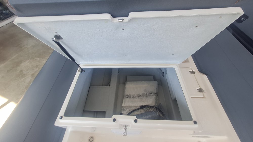 Flotteur hyplaon néoprène gris Artic / Davier avec taquet et baille à mouillage / bain de soleil avant / Grand coffre de rangement avant.