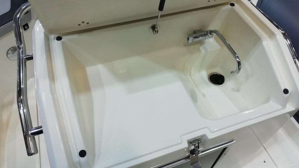 Bolster pilote 2 places avec coffre / Banquette arrière avec grand rangement / Table de pique nique bois / Echelle de bain / Pompe de cale.