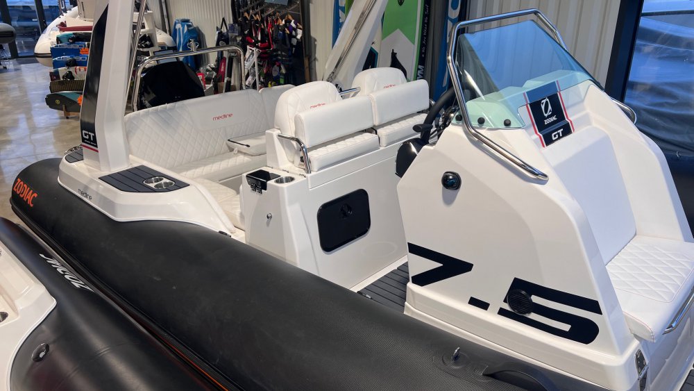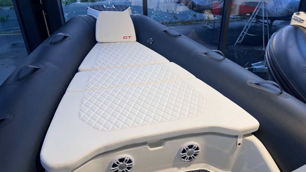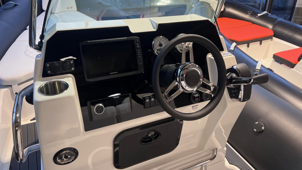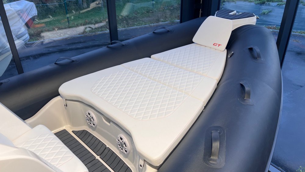 Flotteur hypalon impression carbon, sellerie gauffrée, rollbar avec biminitop, mât de ski, table de cockpit, guindeau électrique, pont EVA, combiné GPS sondeur Garmin 92, sono Fusion avec 4 HP, lumière sous marine, main courante de parebrise.