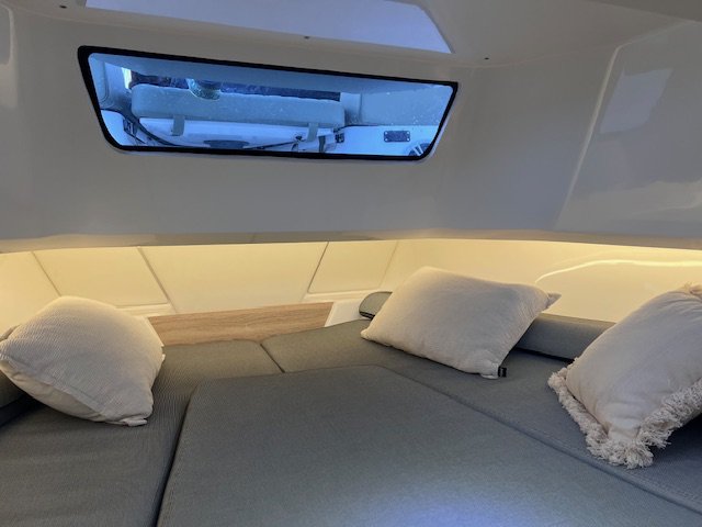 Le plan de pont est doté d'un bain de soleil avant et d'un carré arrière pouvant accueillir jusqu'a 6 convives.