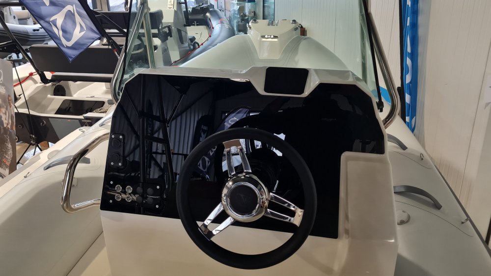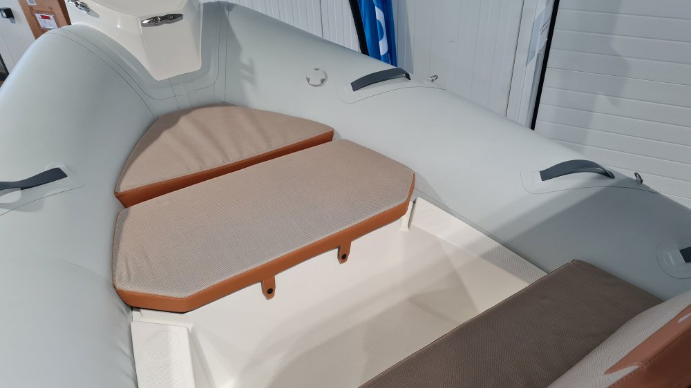 Equipements inclus : Flotteur pvc extiste en hypalon néoprène / Davier inox sur support polyester / Feux de navigation / Sellerie avant / Console avec assise avant / Boslter 2 places avec coffre / Grande banquette arrière / Plateformes avec échelle intégrée.